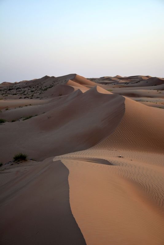 The landscape of Wahiba Sands is dominated by endless sand dunes that create a mesmerizing and dramatic scene. The golden sand dunes reach heights of up to 100 metres. The dunes showcase varying shapes and sizes, sculpted by wind patterns and constantly changing with the shifting sands.