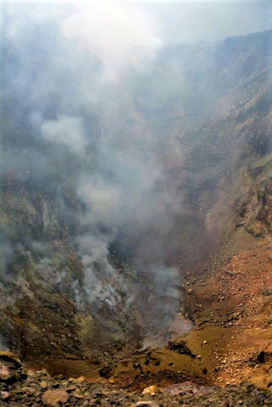 It’s possible to walk around the crater. Most of the area is covered with sulphur ashes, the smoke is disturbing but it’s possible to hang around without a mask.