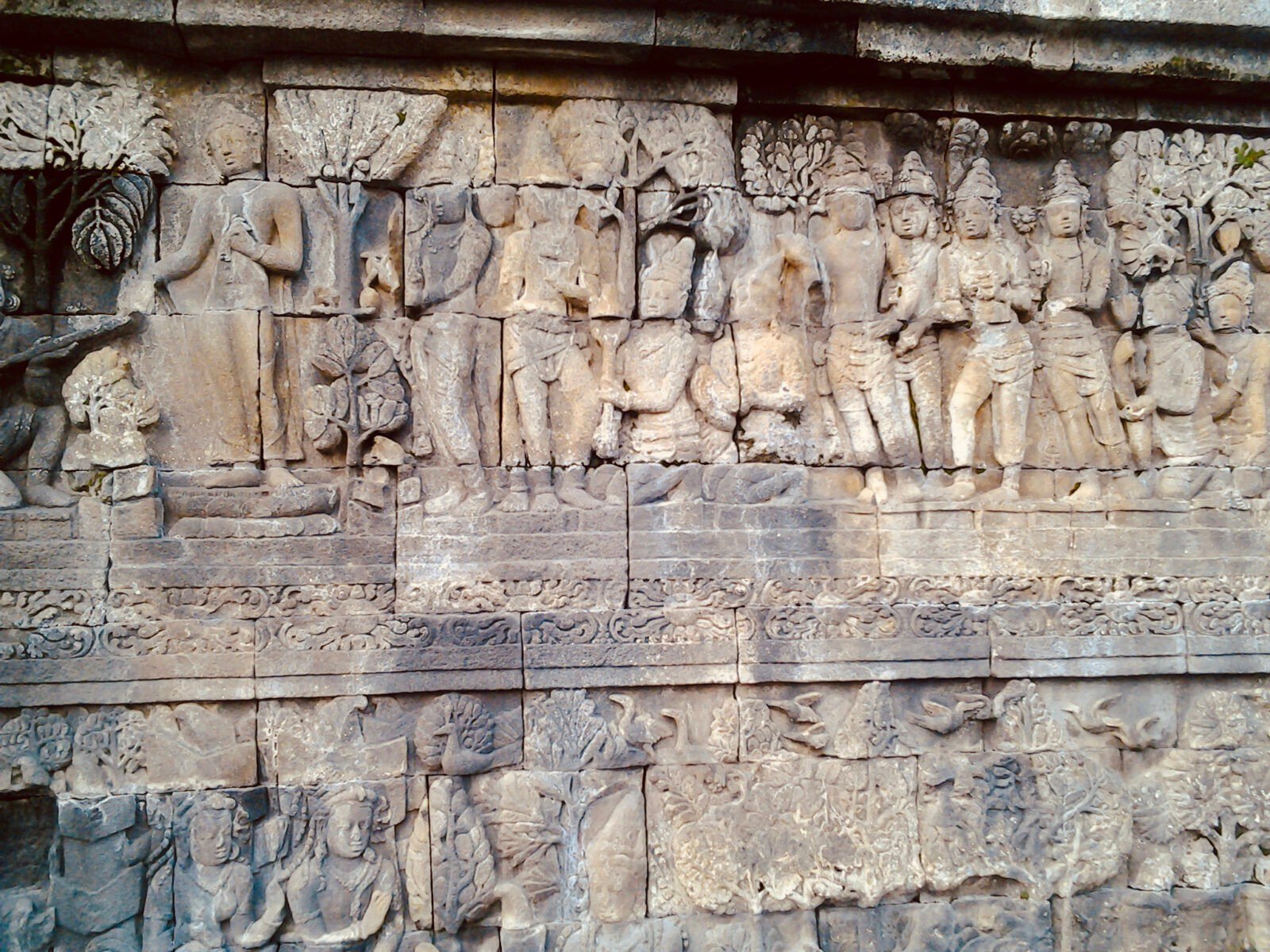 Jataka – one of the popular stories of former lives of the Buddha, often illustrating Indian’s customs and traditions. Around the circular platforms on the top terraces are 72 stupas, each containing a statue of the Buddha.