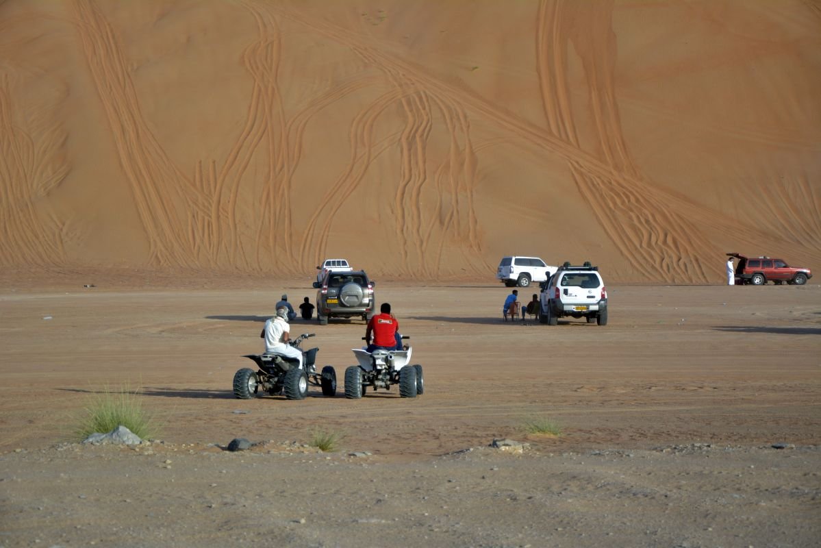 Lya and I wanted to try wild camping in the desert. However, Said said it’s highly dangerous to camp outside the resorts due to the high volume of jeeps off-roading and quad races, organized by wealthy residents, especially at night. Wild desert camping in Oman is not forbidden, and a lot of websites say you can camp alone.