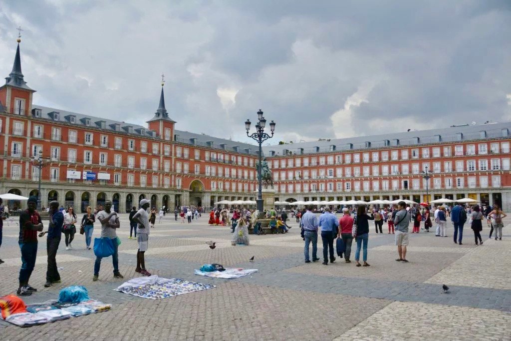 Plaza Mayor – one of the main city squares. Aside the amazing architecture the square is odious. Touristic crowd and migrant merchants overshadow the beauty of the old buildings, leaving no space for a nice atmosphere. Check the place after dark and you will not want to leave 🙂
