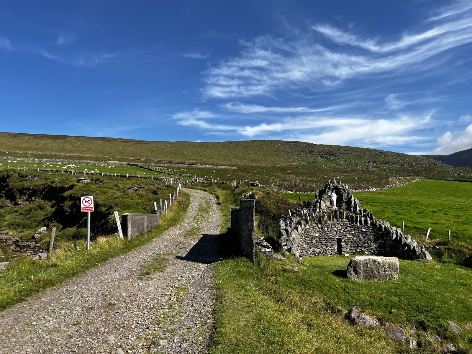 Try to take the hike on a bright day, you will be rewarded by insane coastal views and fast moving clouds. The spectacular landscape spreads across the Blasket Islands and the whole ocean coastline of the peninsula. There is a huge cross on the top and a small shelter underneath, you may need to hide from extreme winds. But it’s a great fun to have your lunch and hot tea at the top.